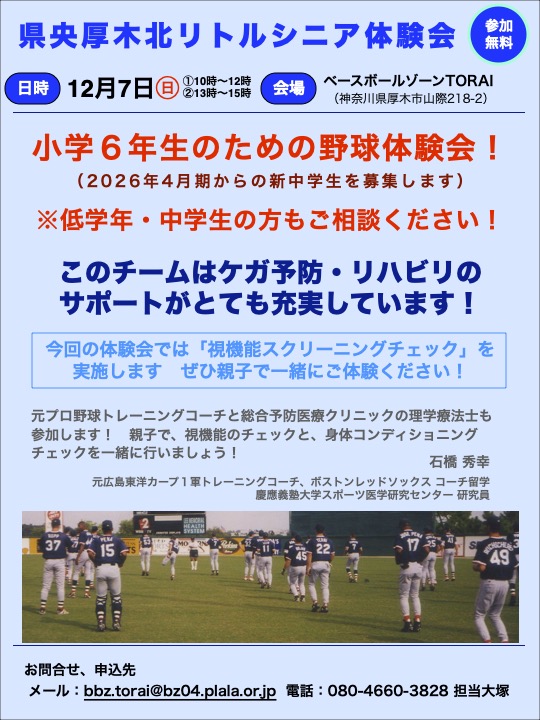 県央厚木北リトルシニア体験会のご案内