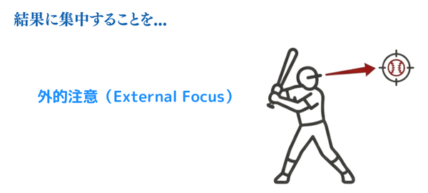 逆に、結果に集中することを、外的注意(External Focus)と言います。