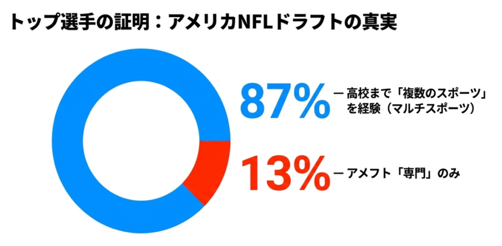アメフトだけを専門にやっていた選手は、わずか13%に過ぎなかったんです。