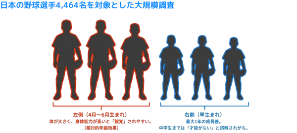 たしかに、「早生まれ・遅生まれ」による最大1年の成長差は、中学生くらいまでは「才能の差」に見えてしまうかもしれません。