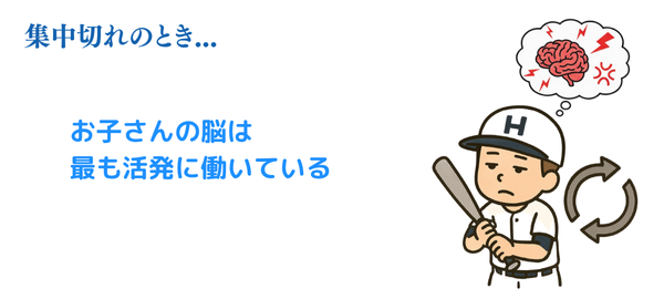 練習中は、常に集中していないと、上達しないと思いますよね。でも、集中が切れるのは、お子さんの脳の仕組みによる”自然な現象”なんです。