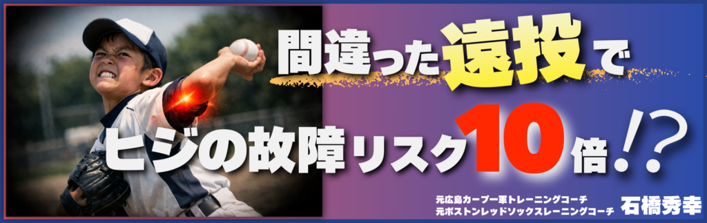実は、距離を伸ばして、上に向かって「山なり」に投げると、ヒジの靱帯を傷めるリスクが4.6倍〜10.7倍も高まることがわかっています。