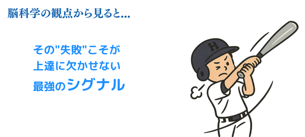 ついそうネガティブにとらえてしまうかもしれません。しかし、脳科学の観点から見ると違います。その”失敗”こそが、上達に欠かせない最強のシグナルなんです。