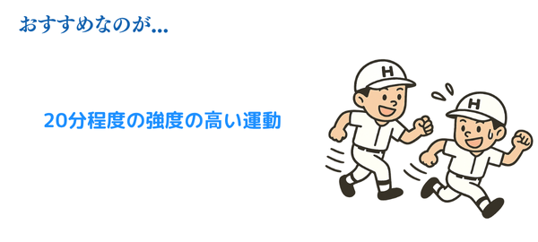 練習直後に20分程度の高強度運動を取り入れることで、脳内のBDNFが分泌され記憶が強化されます。