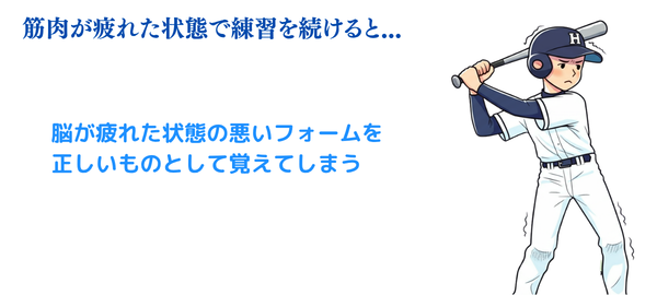 筋肉が疲れた状態で練習を続けると、脳が「疲れた状態の悪いフォームを正しいもの」として覚えてしまう。その結果、上達に悪い影響を与えてしまうんです。